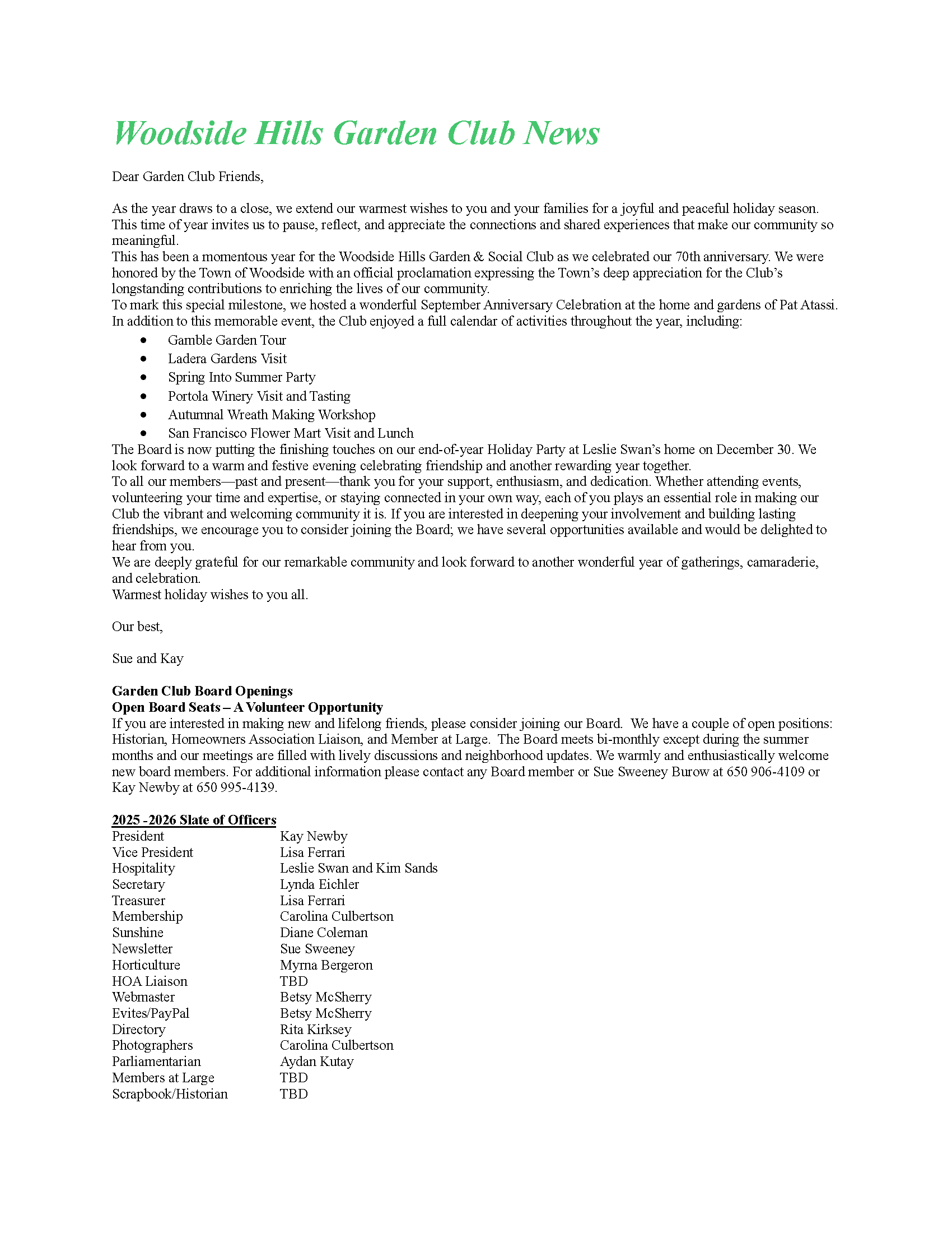 Current Newsletter - Winter, 2025